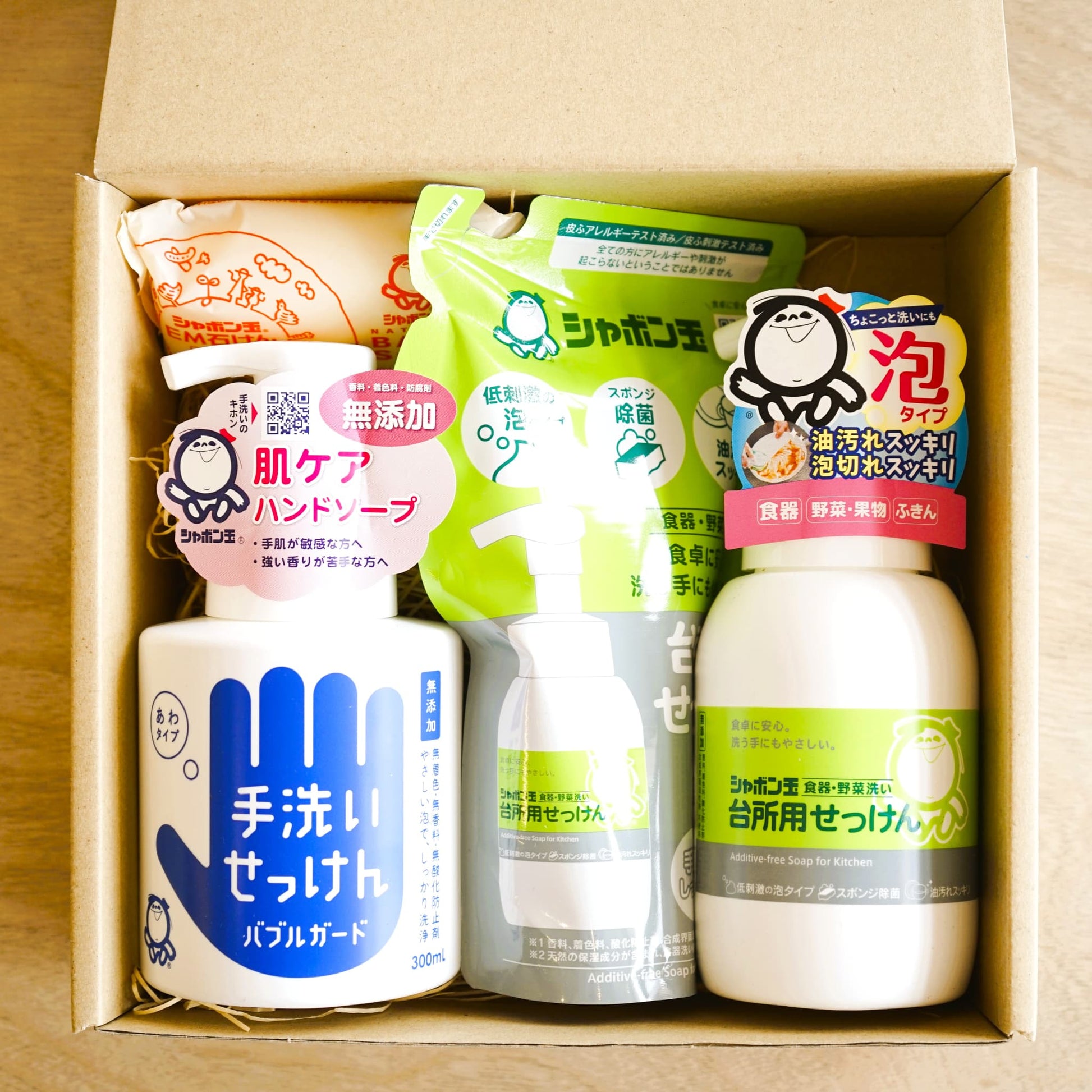 「健康な体ときれいな水を守る」という想いとともに作られた石けんは、シャボン玉石けんのシリーズはどれも香料や着色料、酸化防止剤、合成界面活性剤を使用していない、体に優しい石けんです。